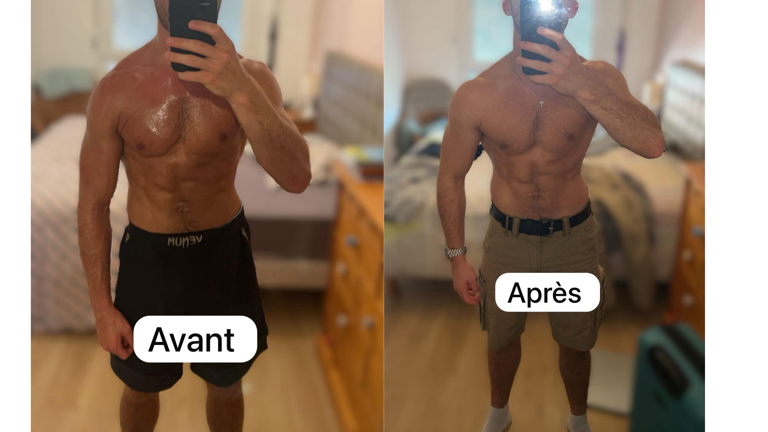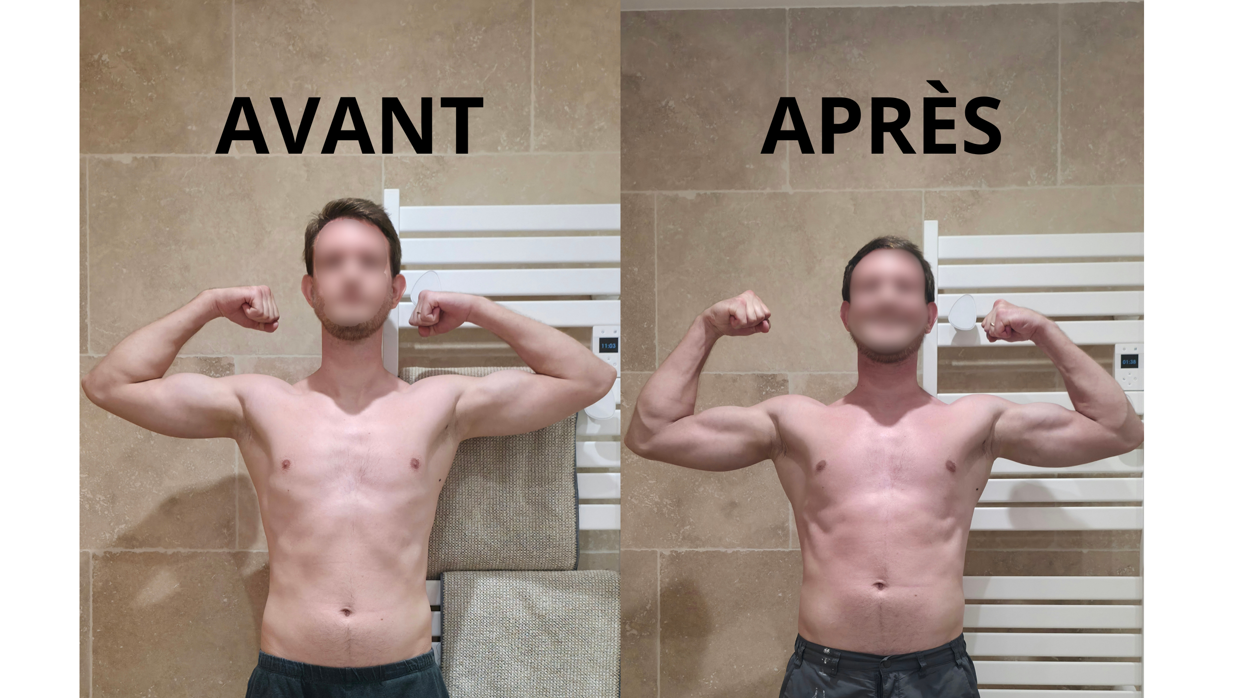 Physiquement, les photos sont assez équivoques : j’ai gagné en définition musculaire et j’ai perdu de la masse grasse.